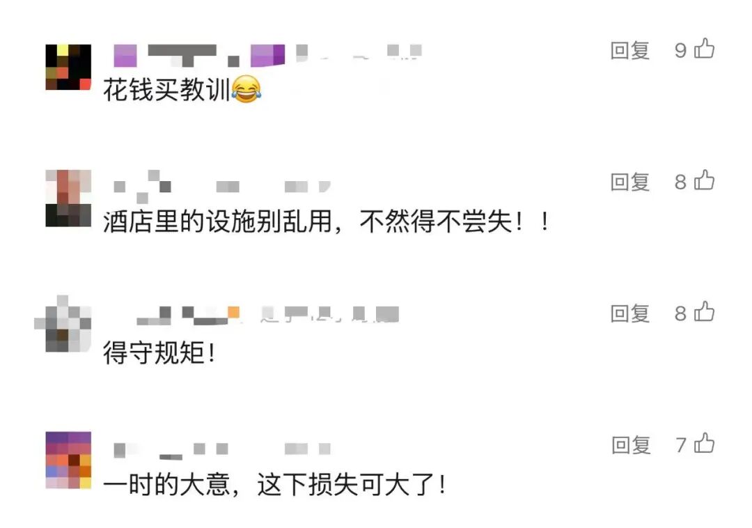 2025年7月,一消费者入住贵州贵阳某酒店时,因在酒店消防喷淋头上悬挂衣服,导致房间被淹,家具、床垫、墙面等全被水泡了。最终,涉事客人赔偿了酒店2000元。